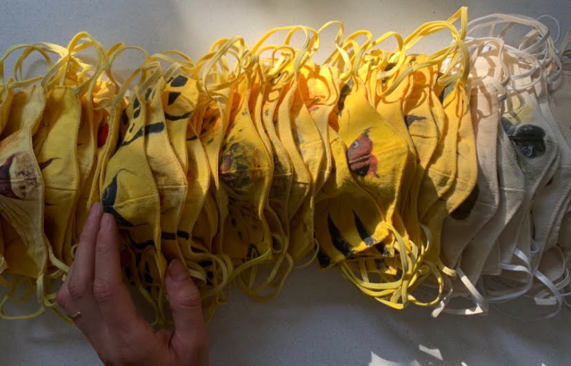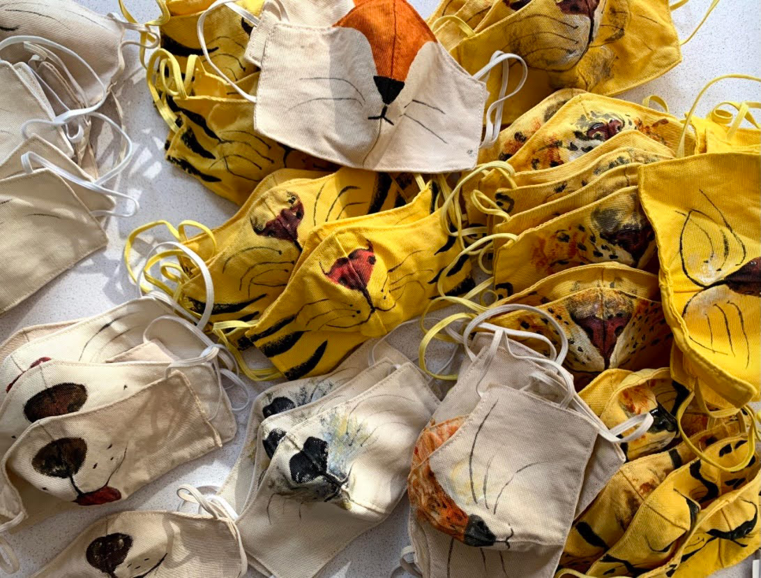 · Mascarillas infantiles teñidas con tintes naturales y pintadas a mano de diversos animales | año pandemia 2020 ·