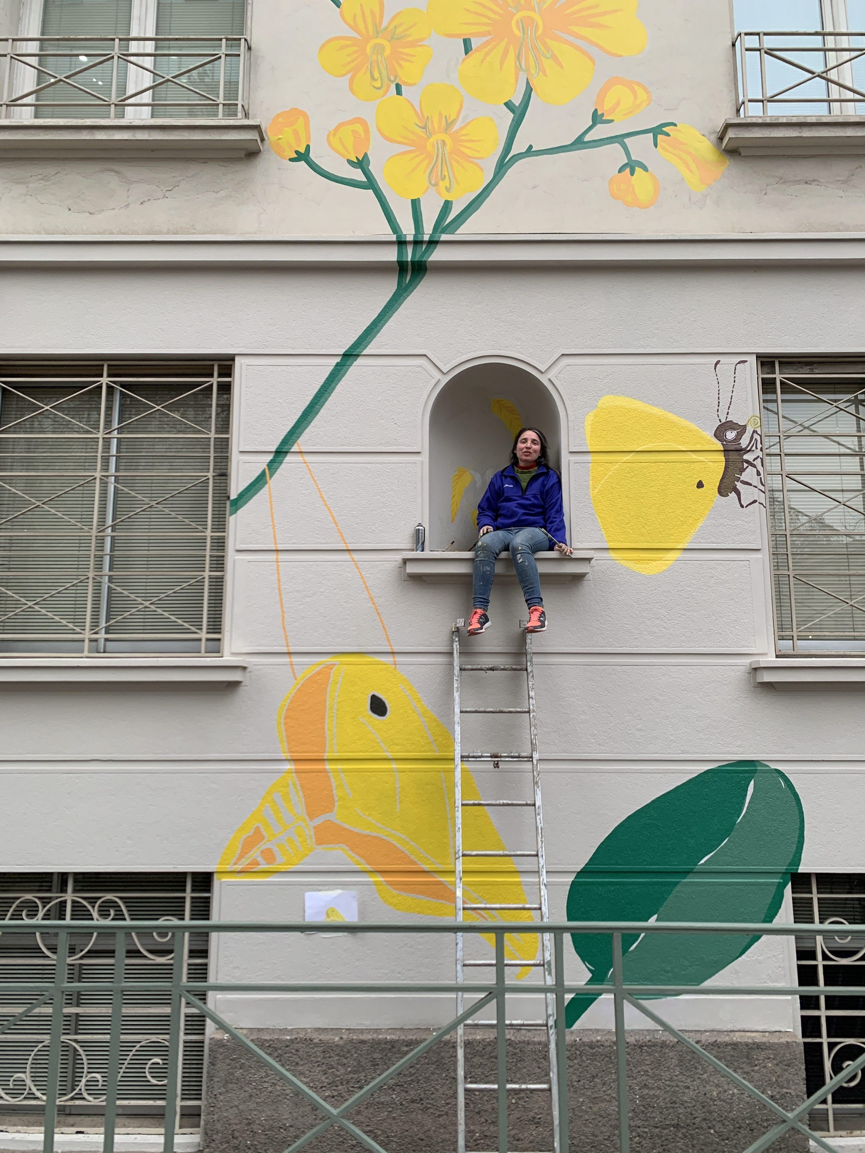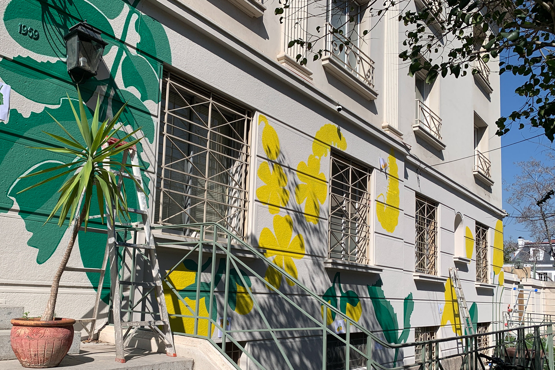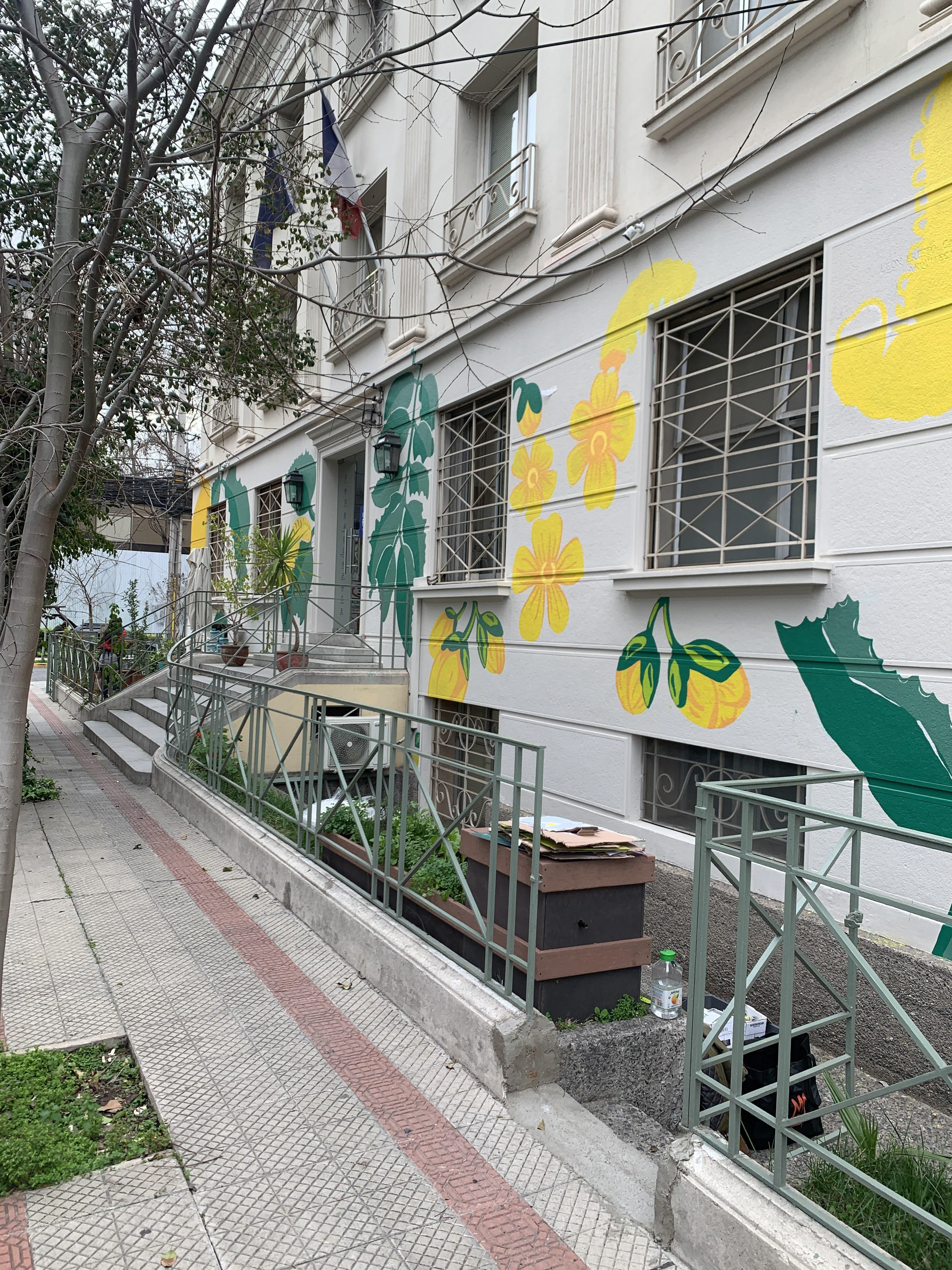 Bajo el concepto de –le vivant– y la dirección de Christian Estrade, se propone pintar en la fachada del Instituto la relación interespecie entre la mariposa limonera y el quebracho, ambas especies nativas de Chile, y cómo dependen la una de la otra a lo largo de su ciclo completo de vida. Este mural hace un cuestionamiento y llamado a la extensión de la ciudad, permitiendo que la naturaleza conviva con las personas y lo urbano. Es un guiño a lo propuesto por Gilles Clément, donde se permite el caos del paisaje, la no planificación, el ser.