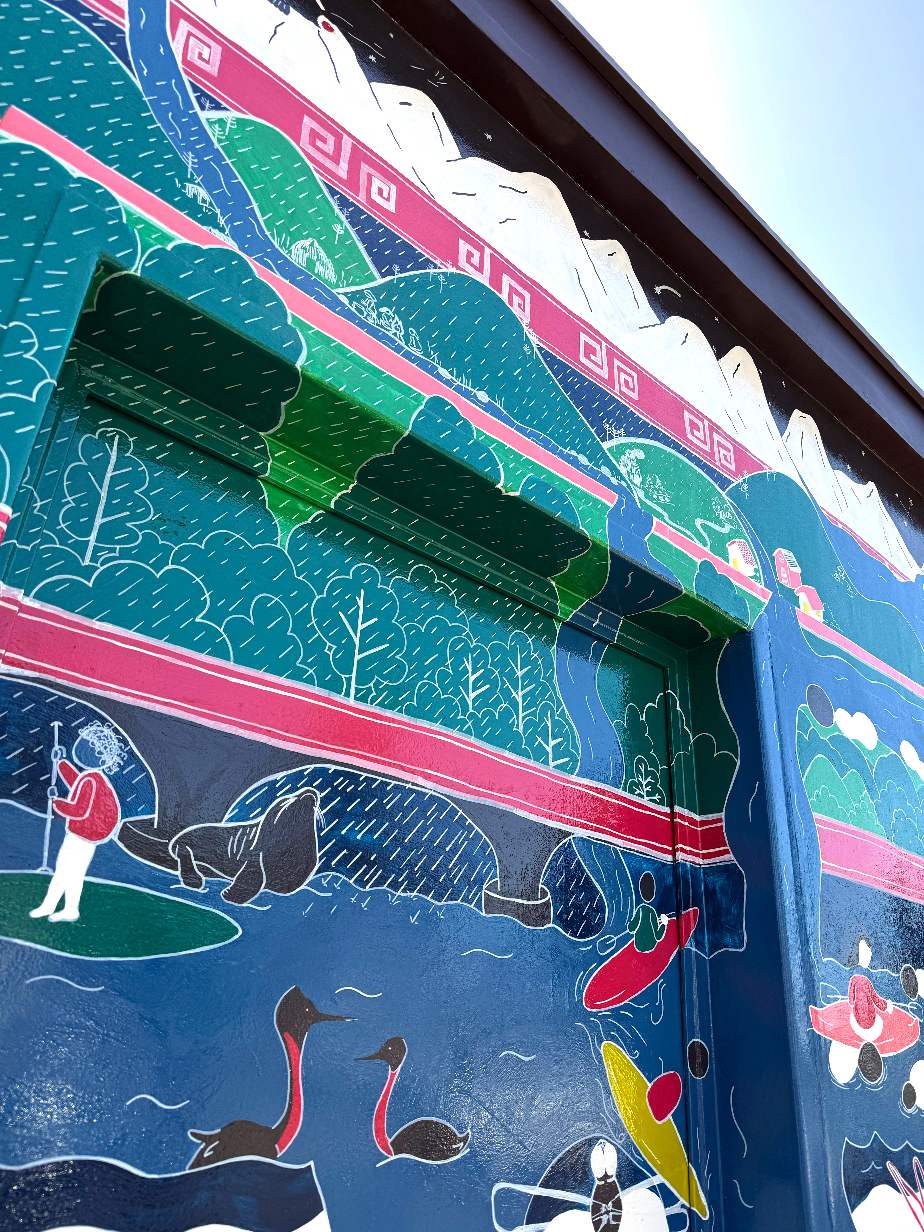 Dirección y diseño María José Carmona | Pintura Francisca Silva, Camila Cesani, Christiane Drapela y María José Carmona. Extensión aprox de los muros 11x16 metros y 30 x16 metros. Nada de esto habría sido igual sin la ayuda de Leslie.